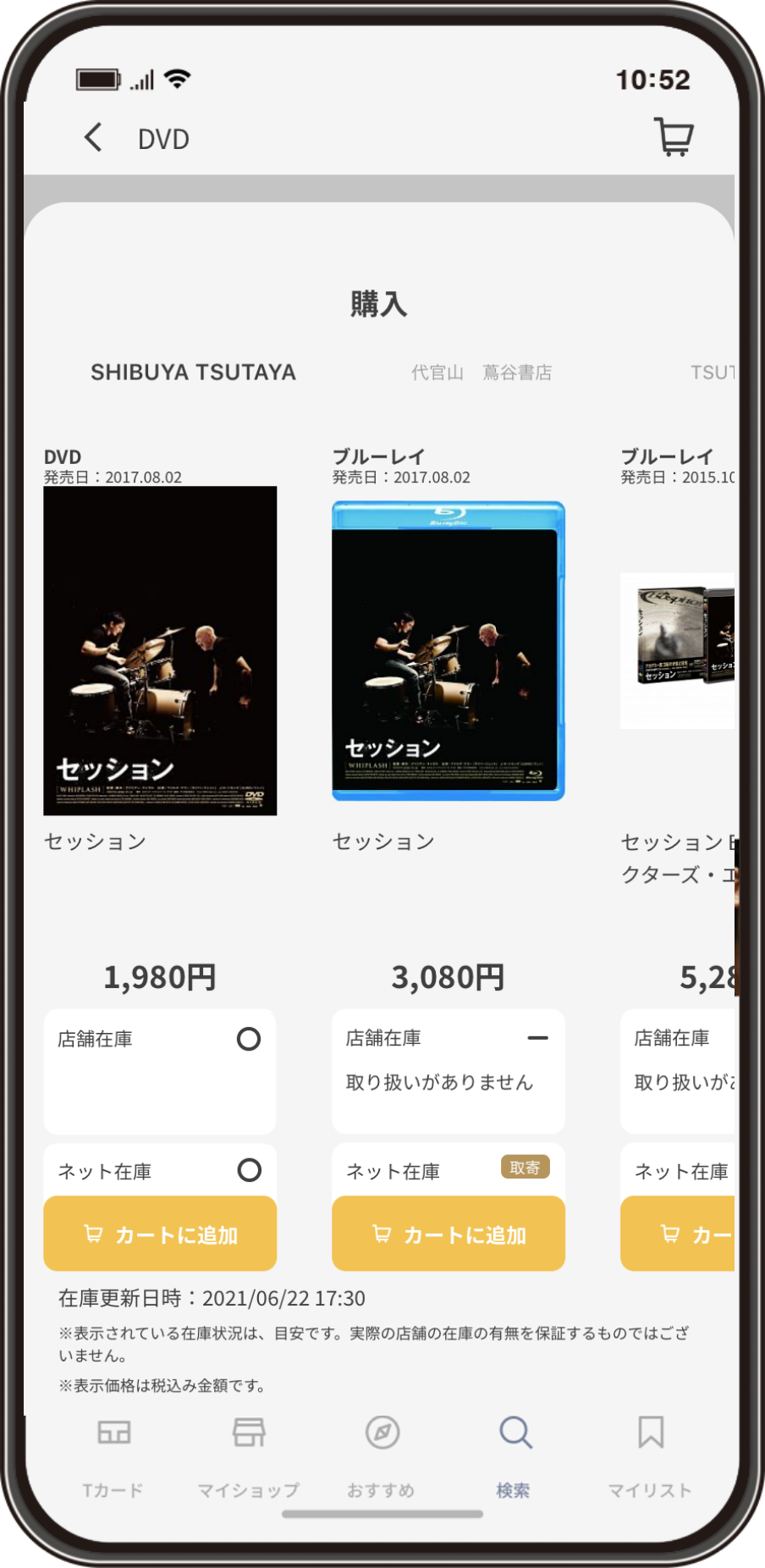 TSUTAYAオンラインショッピング(販売商品に限る)の在庫状況を確認することができます。