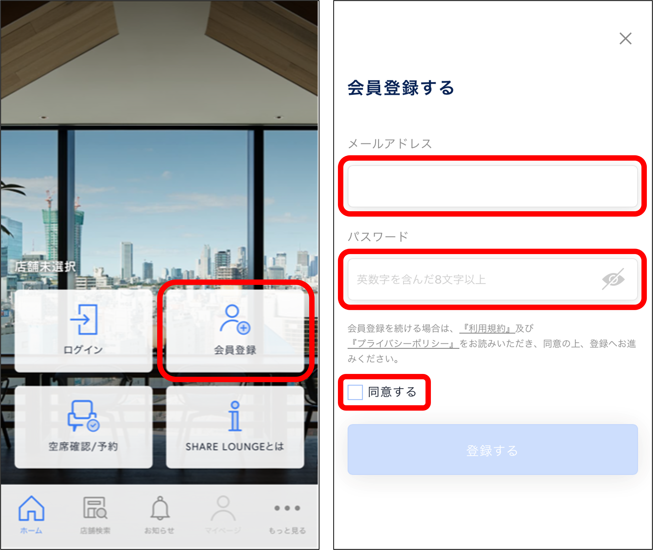 ◆SHARE LOUNGE(シェアラウンジ)アプリの会員登録方法は?