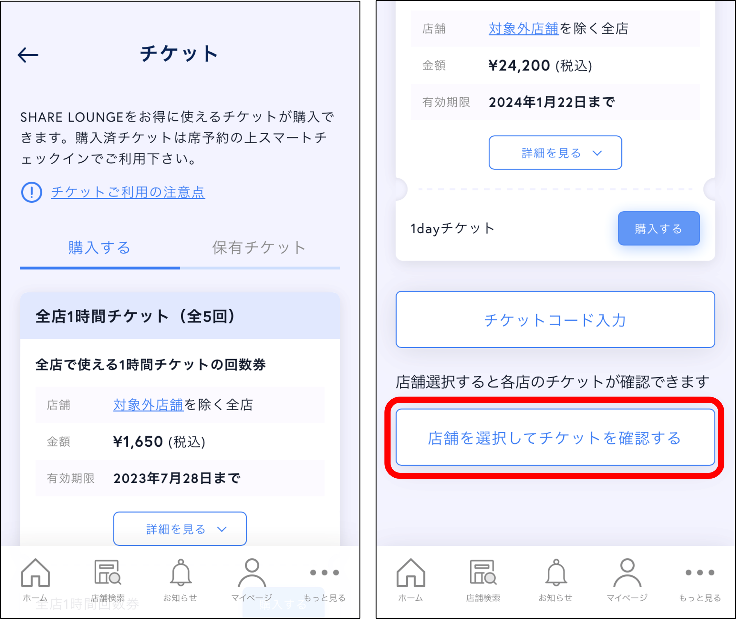 SHARE LOUNGEアプリ内でチケット(回数券)が、購入可能になりました。